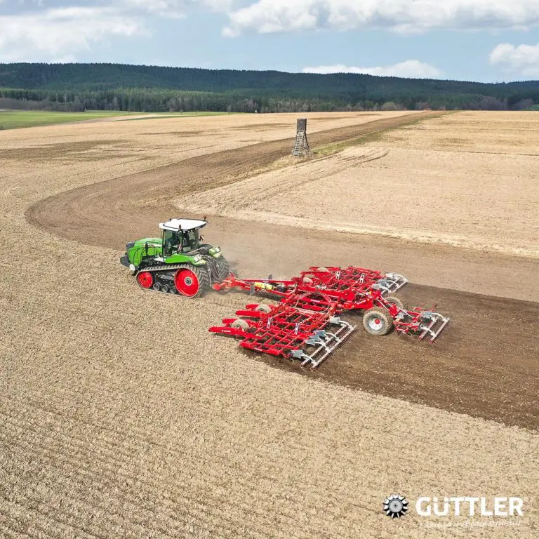 Das bodenschonende Konzept von Güttler® ohne Walze, übertragen auf Großbetriebe: Riesige Schlagkraft im Feld danke enormer Arbeitsbreiten von 10 bzw. 12 Metern und dabei überzeugend wendig. Sicher auf der Straße: Mit Fahrwerk und Druckluftbremsanlage.